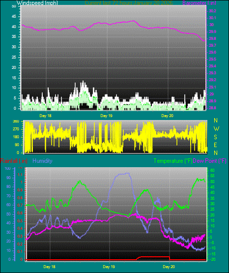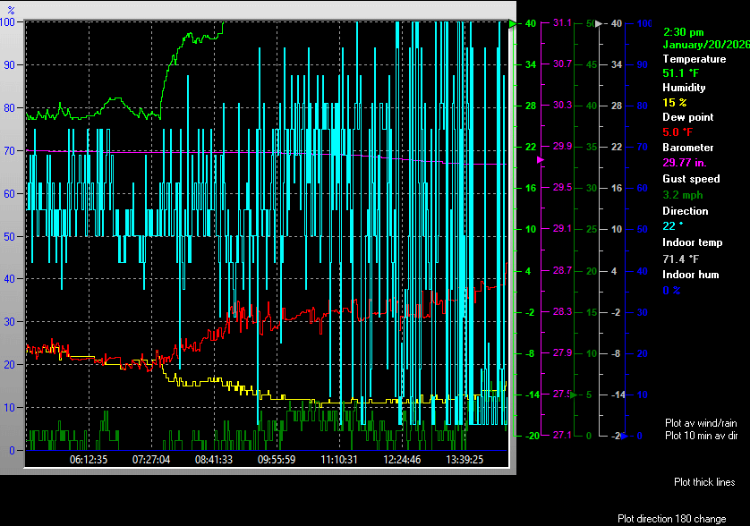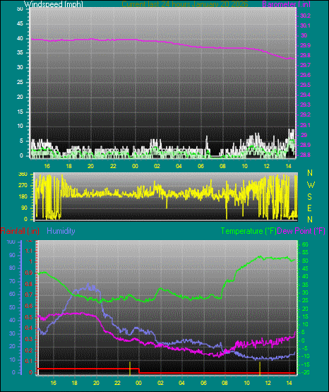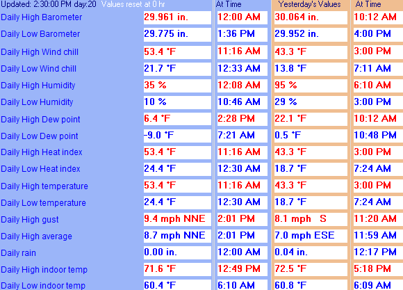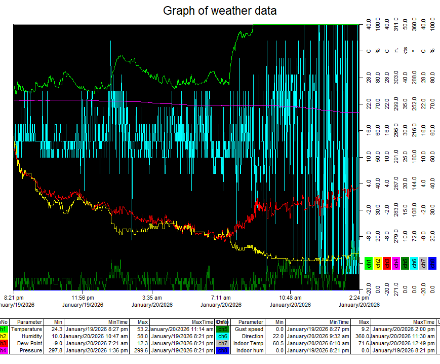| Maximum Temperature (since midnight) | 53.4°F at: 11:16 AM | Minimum Temperature (since midnight) | 24.4°F at: 12:30 AM |